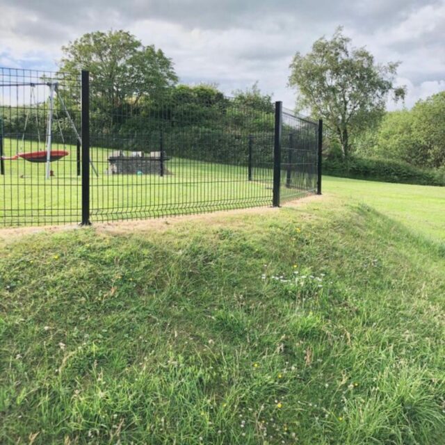 V-mesh fence is a highly secure and durable fencing material that is often used in community sport enclosures. It features a tightly woven mesh design that can be customised to suit a height to prevent loose football tennis balls or more. It can be locked off and managed by providing a high level gate to help prevent vandalism . V-mesh fence requires minimal maintenance and is highly customisable, making it a cost-effective and reliable solution for sports enclosures.