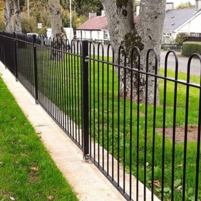 Bowtop fencing features decorative, curved tops. It is commonly used in parks, gardens, and public areas to provide both aesthetic appeal and functional boundaries. Bowtop fencing adds a touch of elegance and complements the surroundings by creating a gentle barrier, preventing unauthorized access while maintaining an open and welcoming atmosphere. The smooth, rounded tops of bowtop fencing offer safety benefits by minimizing the risk of injury compared to traditional pointed-top fences. Overall, bowtop fencing combines style, safety, and functionality.